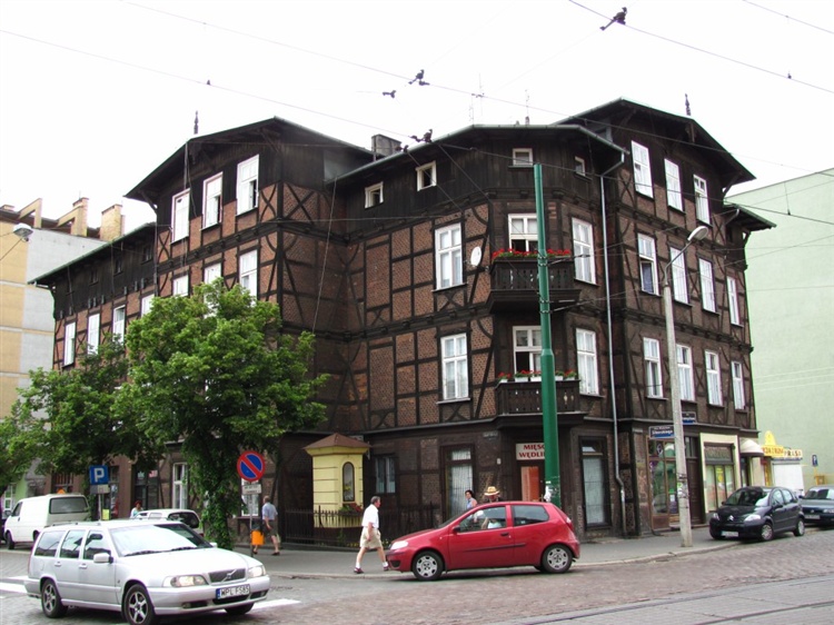 Na rynku Wildeckim, a konkretnie na skrzyżowaniu ulic Sikorskiego i Przemysłowej, znajduje się kamienica zbudowana w XIX w. z muru pruskiego, zwanego z niemieckiego fachwerkiem. Jeszcze do lat 70-tych XX w. domy takie były powszechne przy rynku Wildeckim, niestety zostały rozebrane i do naszych czasów pozostała się tylko jedna kamienica. W ogródku kamienicy znajduje się kapliczka słupowa.