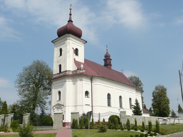 Klasycystyczny kościół Narodzenia św. Jana Chrzciciela został wzniesiony w latach 1816-1818 według projektu Józefa Heintzego. Jest to obiekt murowany, jednonawowy, wykonany w stylu neobarokowym. Wewnątrz oprócz ołtarza głównego znajdują się także dwa boczne: Świętej Rodziny i Najświętszego Serca Pana Jezusa, które są bogato ozdobione pięknymi rzeźbami.