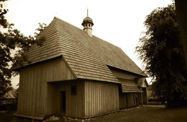 Obecny kościół pochodzi z roku 1601. Kościół zbudowany z drewna modrzewiowego, bez użycia gwoździ, jest budowlą orientowaną, jednonawową, z mniejszym, prostokątnie zamkniętym prezbiterium i przyległą doń zakrystią. Ten niewielki ( 14 m długości, 6 m szerokości ) kościółek nakrywa dwuspadowy dach z ośmioboczną wieżyczką na sygnaturkę.
