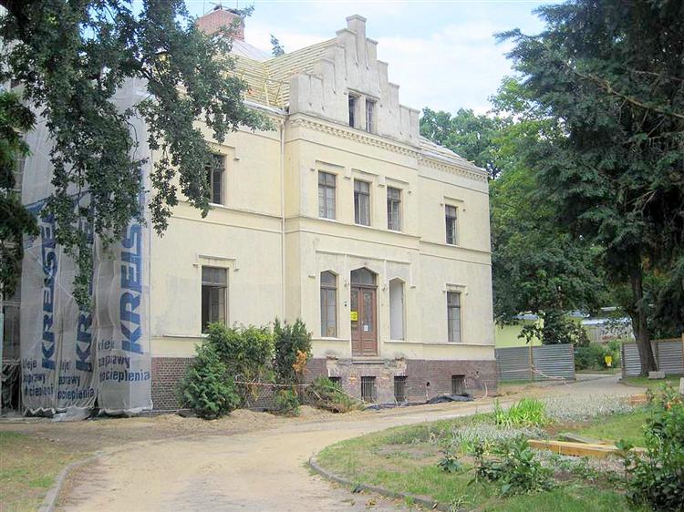 Centralne miejsce w założeniu zajmuje pałac wzniesiony w latach 1852-1853. Leonhard Bierbaum, który nabył dawne dobra biskupów poznańskich zlecił zaprojektowanie swojej siedziby architektowi z Berlina K.H. Knobluachowi. Autor projektu nadał budynkowi eklektyczną formę, w której pojawiły się odwołania do innych stylów architektonicznych. Piętrowy pałac wzniesiony na rzucie kwadratu posiadał główne wejście od strony folwarku, a przeciwna elewacja wybiegała na duży, liczący ponad 5 ha powierzchni park.
