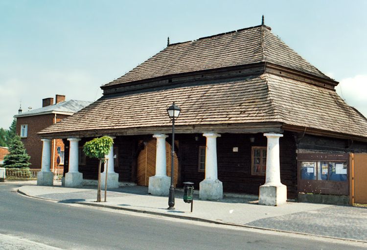 Drewniana karczma konstrukcji zrębowej (1771), parterowa, z podcieniem od frontu.