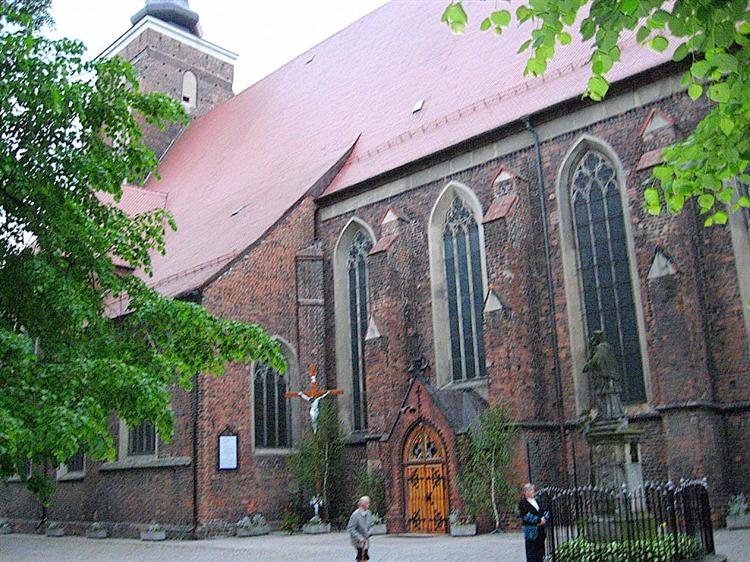 Murowany z cegły gotycki kościół posiada prezbiterium z początku XIV w., do którego w XV w. dobudowano nawę. Wnętrze trójnawowej, halowej świątyni została w 2 poł. XVII w. przebudowane w stylu barokowym. Warto zobaczyć zachowane z tego okresu resztki dekoracji - po stronie północnej świątyni fragmenty polichromii barokowej imitującej baldachim z draperią, a na sklepieniu po stronie południowej – bogate sztukaterie (liście akantu i palmety) obejmujące cztery owalne płyciny z malowanymi scenami z życia św. Bonawentury.