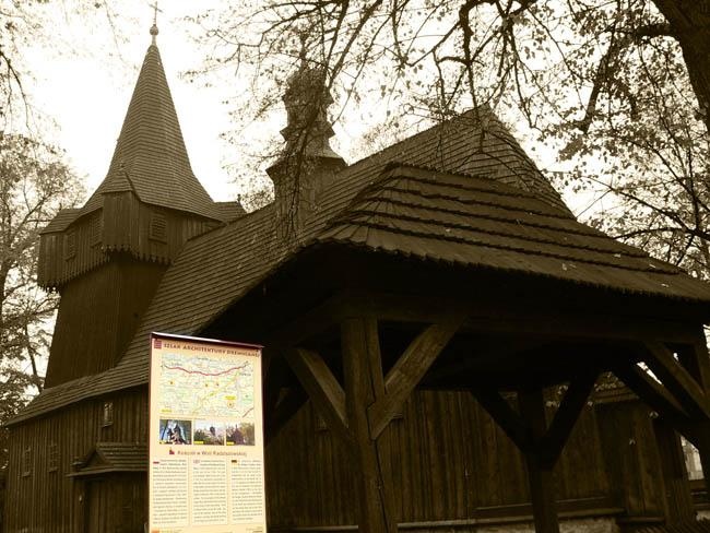 Drewniany kościół Wniebowzięcia NMP, konstrukcji zrębowej (koniec XV w.), remontowany 1981; wieża frontowa z izbicą (XIX w.).