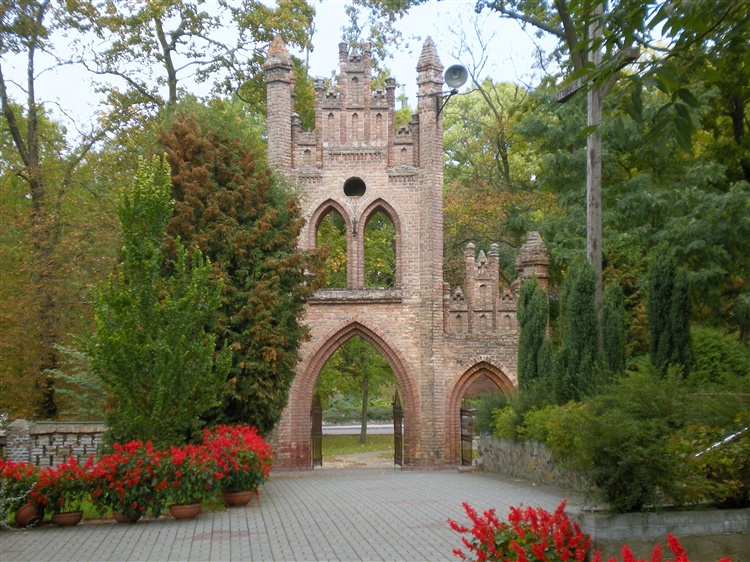 Bramę wzniesiono w 2 poł. XIX w. Jest neogotycka, murowana z cegły. Składa się z trzech arkad ostrołukowych. Znacznie wyższa część środkowa, została przepruta w górnej kondygnacji parą ostrołukowych przezroczy. Brama-dzwonnica stoi przed wejściem do dawnego kościoła Augustianów.