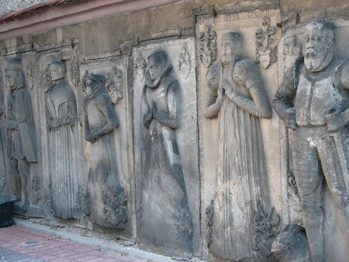 Jadąc przez Bolesławiec od strony Zgorzelca w dzielnicy Bolesławice (lewa strona Bobru) warto odwiedzić mały kościółek pw. Matki Bożej Różańcowej . Na jego zewnętrznych murach można podziwiać zespół dziewięciu niepowtarzalnych płyt nagrobnych z piaskowca - szlacheckich nagrobków figuralnych. Wszystkie one należą do członków rodzin von Kittlitz i von Raussendorf i pochodzą z lat 1418 -1596. Obok nich zachowały się także XVIII i XIX-wieczne epitafia pastorów. Podobne do nich nagrobki najczęściej widuje się w kościołach wiejskich (kiedyś dzielnica Bolesławice była wsią ). Postaci wykute w kamieniu przedstawiono w strojach hiszpańskich, a nie w modnej wówczas zbroi rycerskiej, co świadczy o młodym wieku zmarłych. Taki sposób upamiętniania majętnych zmarłych zachował się do XVIII w. Później epitafia zaczęto zastępować coraz częściej kaplicami grobowymi, często spotykanymi na cmentarzach wiejskich i przypałacowych.