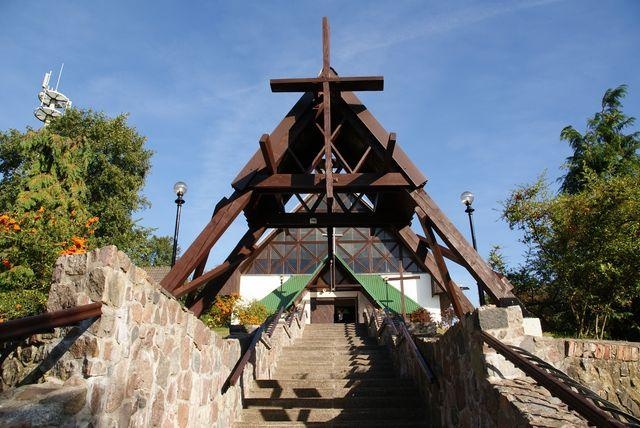 Budowę świątyni rozpoczęto dzięki parafianom. Stanęła ona na miejscu rozebranego przez władze państwowe w 1957 r. kościoła pw. Wniebowzięcia Najświętszej Maryi Panny. Budowę wspierali przybywający tu pielgrzymi. W kościele warto zobaczyć kopię obrazu Matki Boskiej Śnieżnej Królowej Pokoju, przywiezioną ze Stoczka Warmińskiego. W roku 2009 obchodzono 25-lecie sanktuarium.