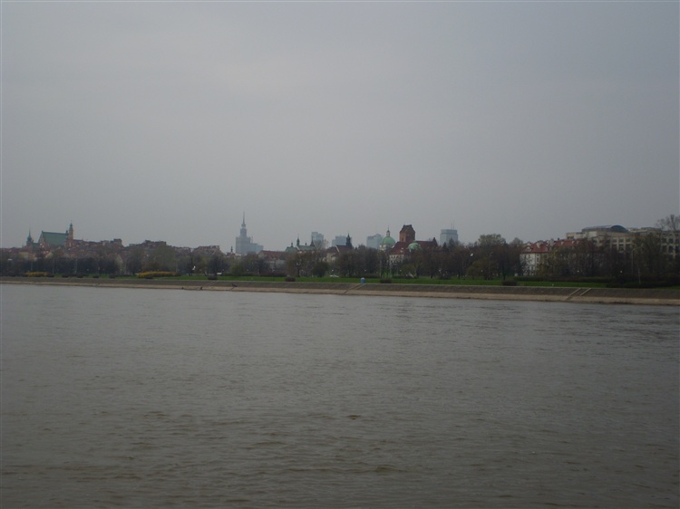 Punkt widokowy nad Wisłą z piękną panoramą starego miasta i mostu Gdańskiego.