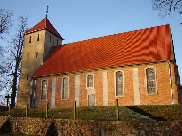 Miejscowa świątynia jest budowlą w stylu gotyckim, jednonawową, wzniesioną w pierwszej połowie XIV w. Jest to kolejny zabytkowy murowany kościół w gminie, osadzony na kamiennym fundamencie.