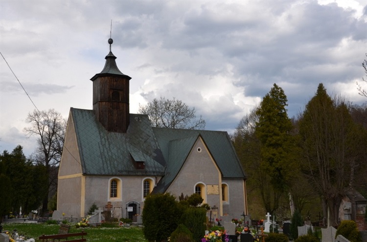 Kościół został wzniesiony przed 1517 r. (najprawdopodobniej w XIV w.). Jest budowlą jednonawową z kaplicami od południa i północy. Był rozbudowany ok. 1600 r., restaurowany w XVIII i XIX w. oraz remontowany w 1959 r. W południowej ścianie świątyni ostrołukowy kamienny portal z drzwiami z gotyckimi okuciami. We wnętrzu znajduje się późnorenesansowa chrzcielnica, barokowy ołtarz i nagrobki z końca XVI w.