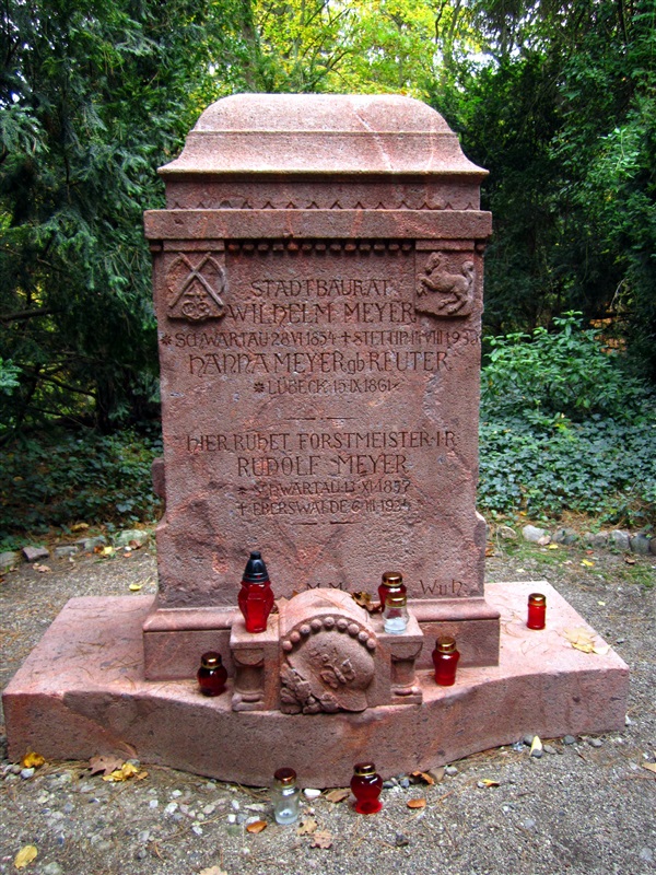 Wilhelm Meyer-Schwartau (1854-1935) był on niemieckim architektem, w latach 1891–1921 miejskim radcą budowlanym Szczecina. Zaprojektował on m.in. szczeciński Cmentarz Centralny i jego budowle, układ przestrzenny Wałów Chrobrego - Hakenterrasse oraz stojący tam dzisiejszy gmach Muzeum Narodowego, był również projektantem neogotyckiego kościoła św. Gertrudy na Łasztowni oraz gmachu magistratu, obecnie znajduje się tam rektorat Pomorskiego Uniwersytetu Medycznego.