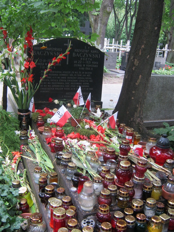 Krzysztof Kamil Baczyński (ps. Jan Bugaj, Emil, Jan Krzyski, Krzysztof, Piotr Smugosz, Krzysztof Zieliński, Krzyś; ur. 22 stycznia 1921 w Warszawie, zm. 4 sierpnia 1944 w Warszawie) – polski poeta czasu wojny, podchorąży, żołnierz Armii Krajowej, podharcmistrz Szarych Szeregów, jeden z przedstawicieli pokolenia Kolumbów. Zginął w czasie powstania warszawskiego jako żołnierz batalionu "Parasol" Armii Krajowej. Zachowały się wszystkie jego dzieła: ponad 500 wierszy, kilkanaście poematów i około 20 opowiadań. Najbardziej znane wiersze Baczyńskiego to: Elegia o ... [chłopcu polskim], Mazowsze, Historia, Spojrzenie, Pragnienia, Ten czas, Pokolenie, Biała magia, Gdy broń dymiącą z dłoni wyjmę..., Polacy. Kilka jego wierszy było śpiewanych przez Ewę Demarczyk (utwór Wiersze wojenne, Deszcze, Na moście w Avignon), Janusza Radka, Michała Bajora, Grzegorza Turnaua (Znów wędrujemy), zespół Lao Che (utwór Godzina W) i Ankh (Bez imienia, Erotyk). Fragment jego wiersza Historia posłużył za tytuł filmu Jeszcze słychać śpiew i rżenie koni.... O twórczości i życiu Baczyńskiego powstało kilka filmów, m.in. Dzień czwarty, w którym postać poety zagrał Krzysztof Pieczyński.
