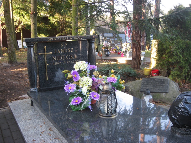Urodził się 7.11.1927 r. Był synem Jana Nideckiego (1892-1940), kapitana WP, który zginął w Katyniu. Janusz Nidecki był nauczycielem, wychowawcą młodzieży, z-cą dyrektora Liceum Ogólnokształcącego, dyrektorem Młodzieżowego Domu Kultury w Chodzieży. Po przejściu na emeryturę odkrył w sobie zacięcie do dziennikarstwa. Pracował w chodzieskiej Telewizji Kablowej i w regionalnym tygodniku „Chodzieżanin”. Na początku lat 90-tych stworzył razem z młodzieżą Zakątek Męczeństwa Narodu Polskiego na cmentarzu katolickim w Chodzieży. Zmarł 27.7.2000 r. w Chodzieży i został pochowany w pobliżu miejsca, które było jego dziełem.