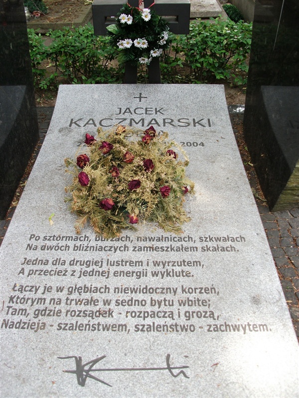 Jacek Kaczmarski (1957-2004), poeta, prozaik, piosenkarz, twórca tekstów piosenek. Znany głównie dzięki piosenkom o tematyce historycznej (Rejtan, czyli raport ambasadora; Sen Katarzyny II, Lekcja historii klasycznej) i społeczno-politycznej (Mury, Nasza klasa, Obława).