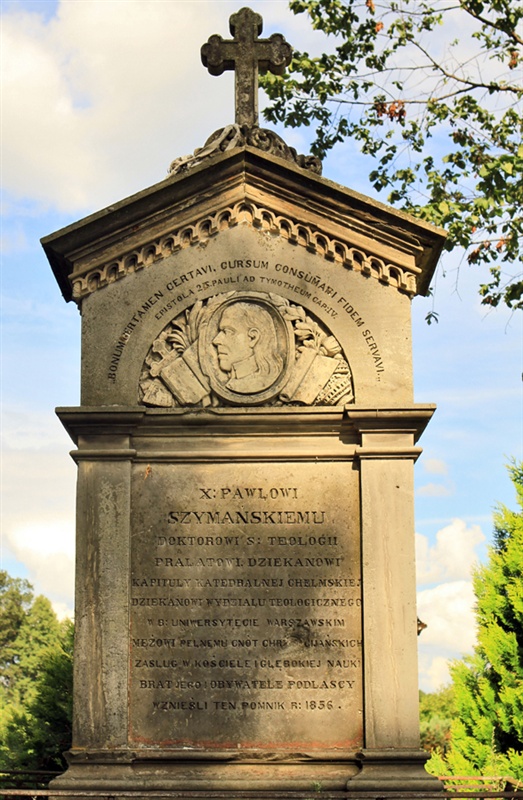 Ksiądz Paweł Szymański syn Andrzeja i Dominiki urodził się 28 sierpnia 1782 roku. Był doktorem teologii, profesorem Pisma Świętego na Uniwersytecie Aleksandrowskim i Warszawskiego Wydziału Teologicznego, prałatem, dziekanem Kapituły Katedralnej Chełmskiej.