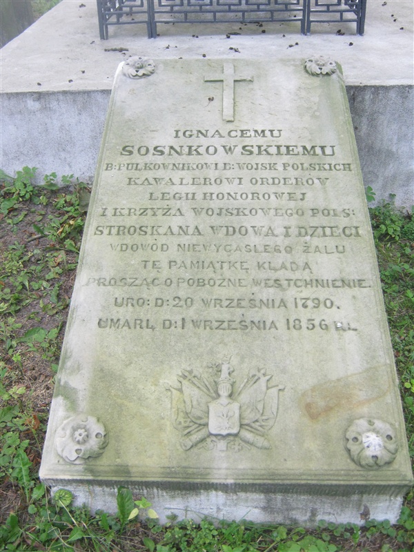 Ignacy Sosnkowski ur. 19 IX 1790 r. w Sosnkowie. W grudniu 1806 r. wstąpił do armii Księstwa Warszawskiego. Szybko awansował w hierarchii wojskowej i już 13 VI 1807 r. został podporucznikiem, a 2 VII 1810 r. otrzymał awans na porucznika, a 18 XI 1811 r. był kapitanem. Brał udział w wojnach w latach 1807, 1809, 1812, 1813 i 1814. W 1812 r. otrzymał Krzyż Virtuti Militari a w 1813 r. Legię Honorową. Po powrocie do zajętego przez Rosjan kraju. 13 II 1815 r. wstąpił do armii Królestwa Polskiego. W czasie powstania listopadowego ciężko ranny pod Olszynką Grochowską dostał się do niewoli rosyjskiej. W 17 VIII 1835 r. Ignacy Sosnkowski nabył na licytacji dobra Wisznice, w skład której wchodziły wsie: Lipinki, Łyniew, Perechód, Rowiny, Żeszczynka i Bokinka Choroszczynka oraz folwarki: Aleksandrów, Bokinka, Curyn, Łyniew, Sapiehów, Wygoda i Żuławy. Rozpoczął z proces ich unowocześniania. W latach 1846-48 ze względu na kłopotów finansowych sprzedał część dóbr. Zmarł 1 września 1956 r.